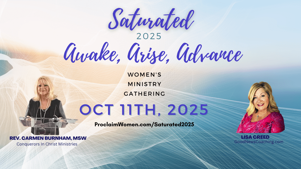 This year we are partnering again with Conquerors In Christ Ministry founder, Rev. Carmen Burnham, MSW to bring you Saturated 2025—a day set apart to meet with God and connect with women who are hungry for more of Him. Join us in Trophy Club, TX for spirit-led worship, practical teaching, and intentional ministry that brings freedom, clarity, and fresh courage for your calling. Come expectant, come as you are, and leave Saturated with His presence, surrounded by new friends, and equipped with next steps for your journey. Reserve your spot today for $35 (lunch included) and bring a friend—let’s believe for a transformative move of God together on October 11!